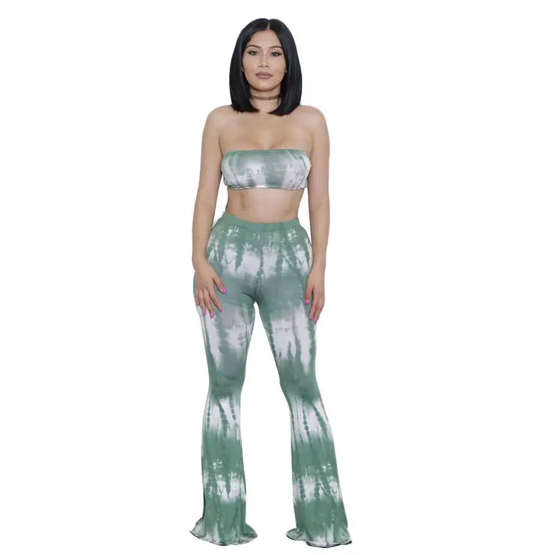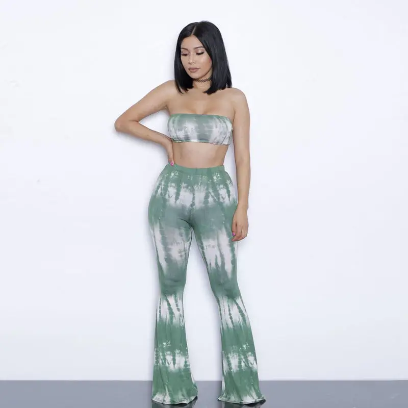HIGH QUALITY Women Summer Fashion Tie Dye Sleeveless Two-Piece Casual Clothing Set Crop Top Bell-Bottom Pants J3